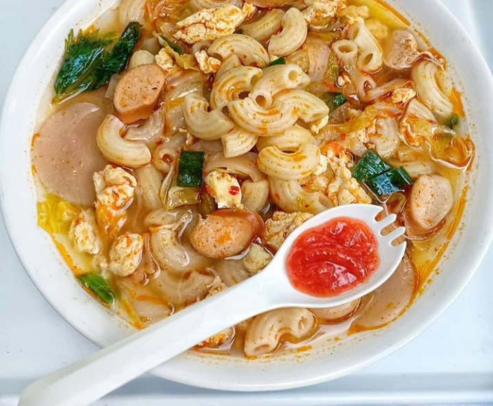 - Masukkan kerupuk dan makaroni, rebus sampai lunak.